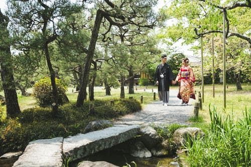 可以在日本庭園裡隨著四季變化的景色拍攝。